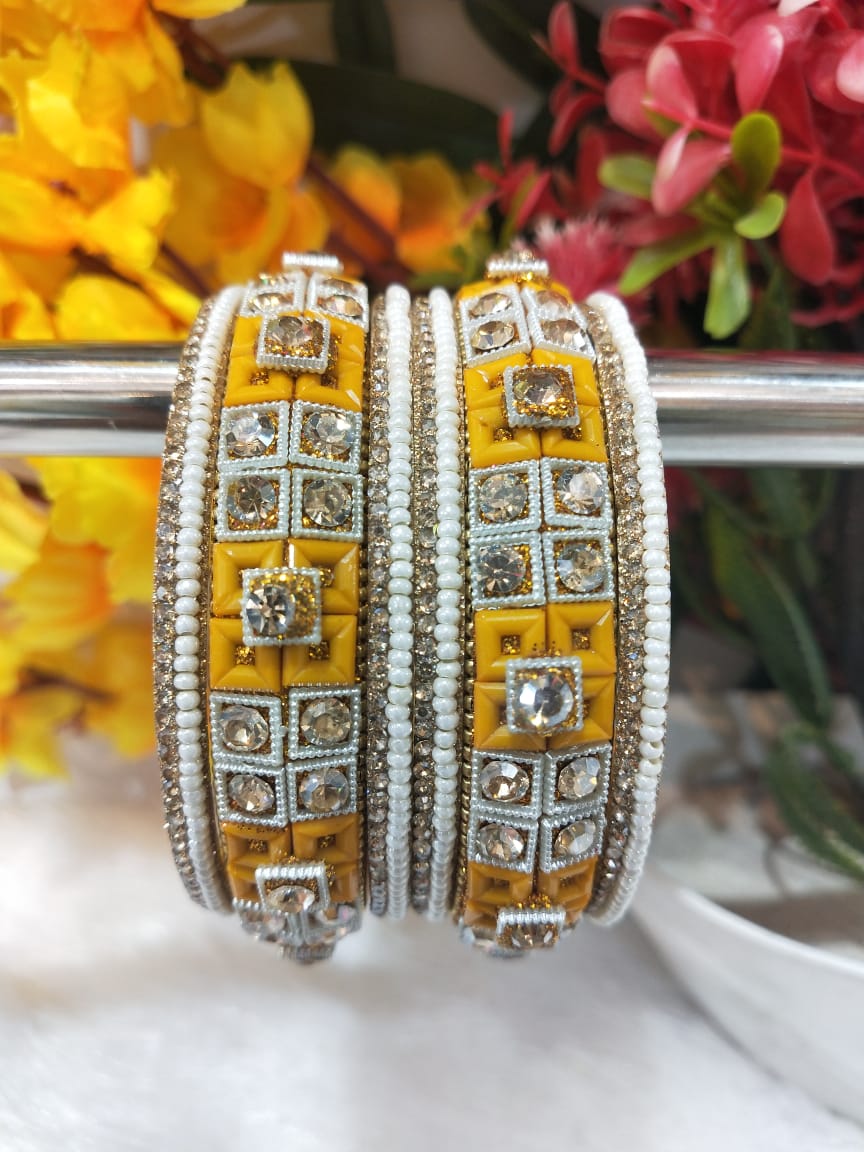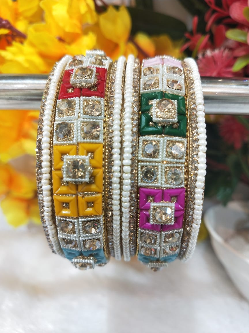 Experience the timeless beauty of these exquisite bangles. Featuring Design,Color and Style, these stunning pieces are perfect for adding a touch of Elegance and Modern flair to any outfit. Whether you're dressing up for a special occasion or simply adding some sparkle to your everyday look, these bangles are sure to impress.