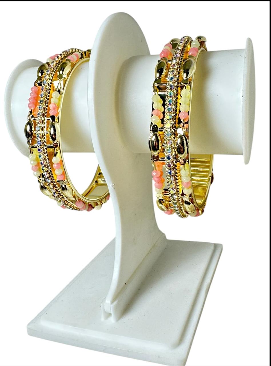 Experience the timeless beauty of these exquisite bangles. Featuring Design, Color and Style, these stunning pieces are perfect for adding a touch of Elegance and Modern flair to any outfit. Whether you're dressing up for a special occasion or simply adding some sparkle to your everyday look, these bangles are sure to impress.