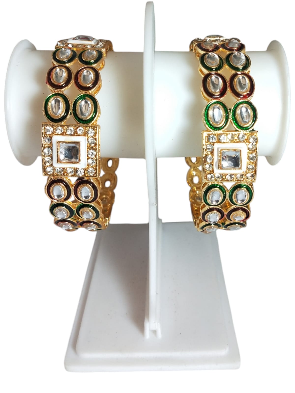 Experience the timeless beauty of these exquisite bangles. Featuring Design,Color and Style, these stunning pieces are perfect for adding a touch of Elegance and Modern flair to any outfit. Whether you're dressing up for a special occasion or simply adding some sparkle to your everyday look, these bangles are sure to impress.