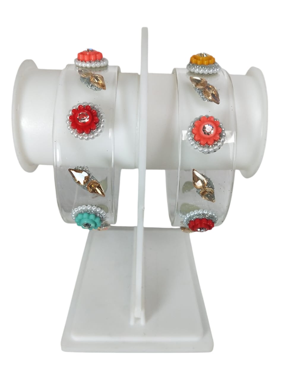 Experience the timeless beauty of these exquisite bangles. Featuring Design,Color and Style, these stunning pieces are perfect for adding a touch of Elegance and Modern flair to any outfit. Whether you're dressing up for a special occasion or simply adding some sparkle to your everyday look, these bangles are sure to impress.
