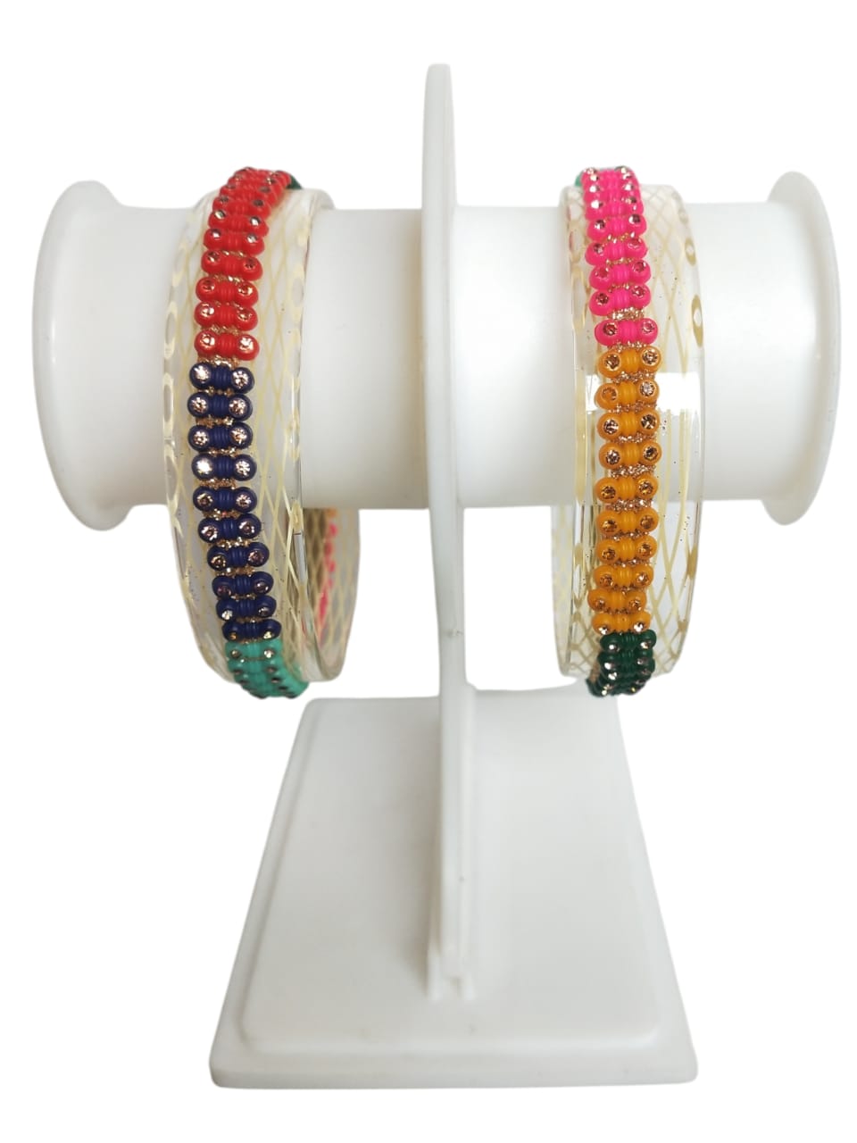 Experience the timeless beauty of these exquisite bangles. Featuring Design,Color and Style, these stunning pieces are perfect for adding a touch of Elegance and Modern flair to any outfit. Whether you're dressing up for a special occasion or simply adding some sparkle to your everyday look, these bangles are sure to impress.