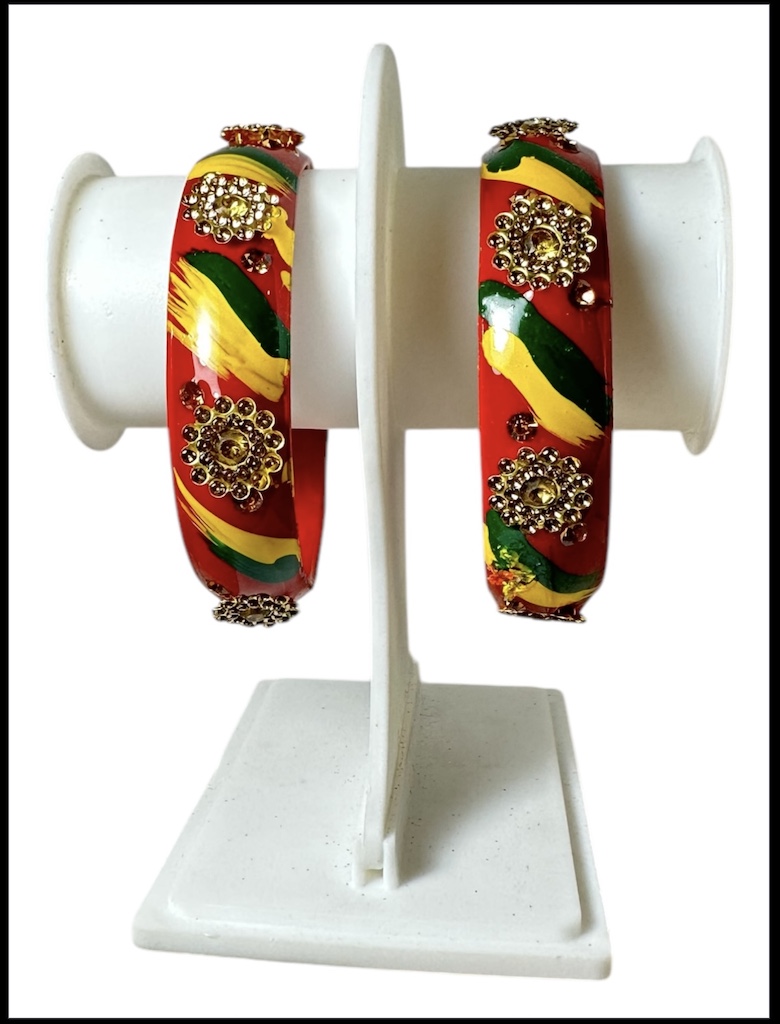 Experience the timeless beauty of these exquisite bangles. Featuring Design,Color and Style, these stunning pieces are perfect for adding a touch of Elegance and Modern flair to any outfit. Whether you're dressing up for a special occasion or simply adding some sparkle to your everyday look, these bangles are sure to impress.